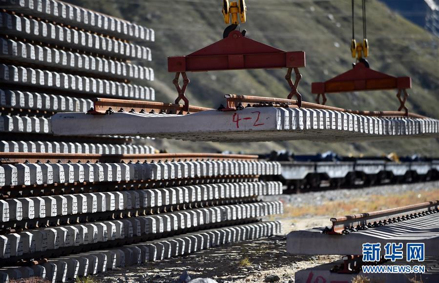 9月19日,在位于西藏拉薩曲水縣的中鐵十一局三公司協(xié)榮鋪架基地,用于架設(shè)川藏鐵路拉薩至林芝段(拉林鐵路)的首批軌排完成生產(chǎn)下線。據(jù)悉,拉林鐵路鋪軌任務(wù)全長(zhǎng)400余公里,需要生產(chǎn)軌枕44萬多根。 新華社記者 覺果 攝