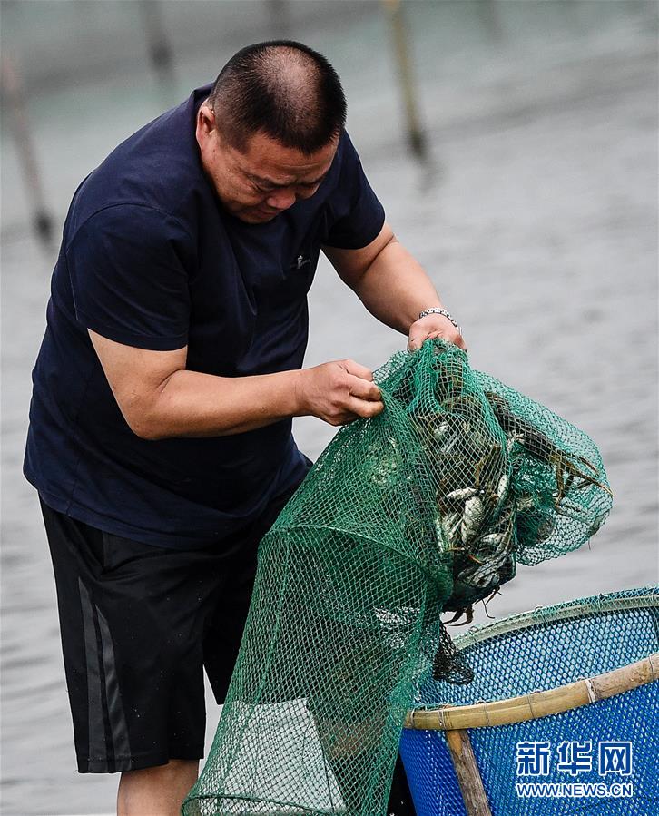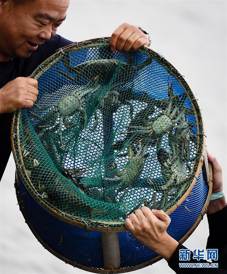 9月21日,蟹農(nóng)展示剛捕撈到的陽(yáng)澄湖大閘蟹。