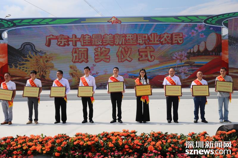 慶祝首屆“中國農(nóng)民豐收節(jié)”活動(dòng)在梅州大黃村舉行,廣東省政府副省長(zhǎng)葉貞琴為十佳最美新型職業(yè)農(nóng)民頒獎(jiǎng)。