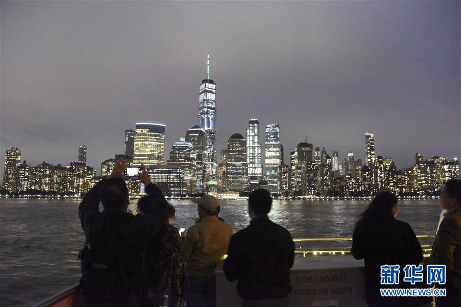 9月23日,在美國紐約,人們在游船賞月活動中拍攝曼哈頓美景。 23日晚,紐約華人社團(tuán)聯(lián)合總會等20多個僑團(tuán)聯(lián)合主辦哈得孫河游船賞月活動。游船從哈得孫河到東河,途經(jīng)炮臺公園、自由女神像、華爾街金融區(qū)、聯(lián)合國大樓等著名景點。 新華社記者韓芳攝