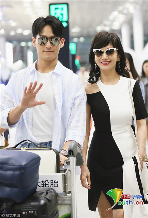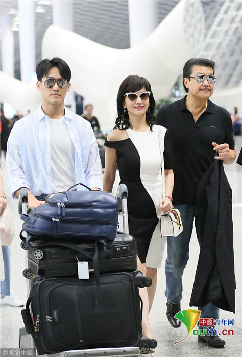 2018年9月25日晚,深圳,剛參加完央視秋晚的趙雅芝攜老公黃錦燊及兒子黃愷杰抵達深圳寶安機場,超高顏值的一家人所致之處頻頻引起側目,其子黃愷杰自推行李車,俊朗的外形引起粉絲一路跟拍,相當拉風!