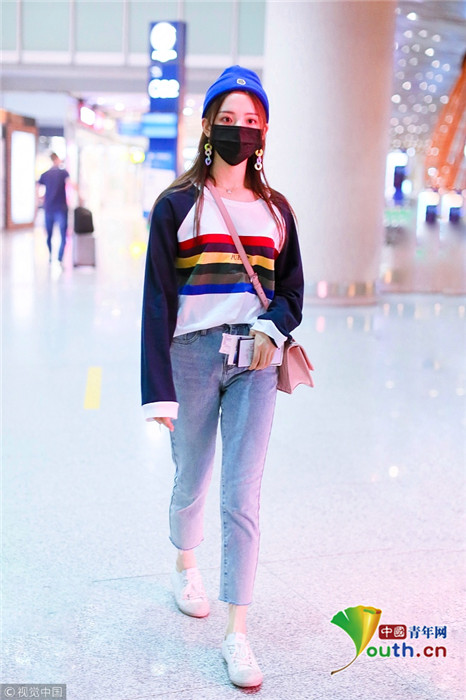 2018年9月25日,北京,“錦鯉少女”楊超越現(xiàn)身機場,她身穿“彩虹裝”青春無敵,戴著糖果色耳環(huán),細(xì)節(jié)處可愛吸睛。
