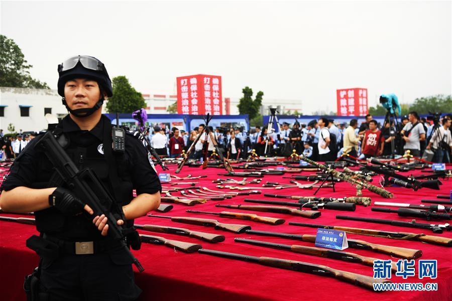 9月20日,非法槍支等物品在全國公安機關集中統(tǒng)一銷毀非法槍爆物品活動重慶現(xiàn)場展示。 新華社記者 王全超 攝