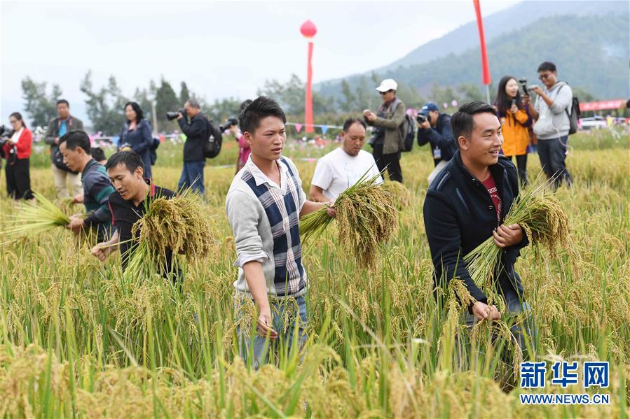 9月29日,人們參加拔谷穗比賽。9月29日,云南省尋甸回族彝族自治縣2018年首屆農(nóng)民豐收節(jié)暨第二屆摸魚節(jié)在雞街鎮(zhèn)舉行,當(dāng)?shù)剞r(nóng)民和游客在豐收的稻田里進(jìn)行摸魚、拔谷穗、山歌對(duì)唱等活動(dòng),享受收獲的喜悅。新華社記者楊宗友攝