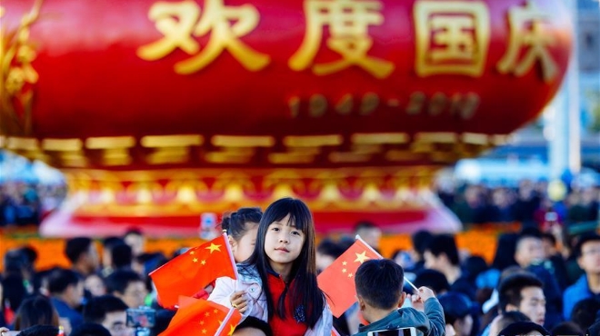 10月1日清晨,隆重的升國(guó)旗儀式在北京天安門(mén)廣場(chǎng)舉行,慶祝中華人民共和國(guó)成立69周年。新華社記者琚振華攝