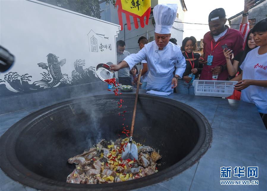 9月30日,廚師在中外游客的圍觀下烹飪“江鮮第一鍋”。當日,浙江省杭州市富陽區(qū)場口鎮(zhèn)東梓關村開啟“江鮮第一鍋”,幾位大廚聯(lián)手在直徑1.5米的大鍋內烹制美味江鮮,這也是當?shù)亍敖r大會”的重頭戲。東梓關村有著1000多年歷史,古就是富春江南岸重要的商貿集散地,素有富春江“東流第一關”之稱。隨著近年來美麗鄉(xiāng)村建設的推進,東梓關村著力打造粉墻黛瓦的江南民居,同時依托富春江豐富的江鮮魚類資源,在秋季舉辦特色“江鮮大會”,通過江鮮捕撈體驗、江鮮第一鍋、百鮮宴、農家菜大賽等活動,吸引各地游客前來感受富春江漁民豐收的喜悅和千年古村的獨特魅力,推動鄉(xiāng)村特色旅游發(fā)展。新華社記者徐昱攝