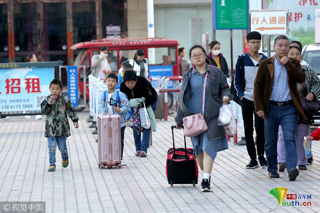 2018年10月1日,江蘇淮安,國(guó)慶長(zhǎng)假首日淮安汽車總站迎來(lái)客流高峰,出行的旅客絡(luò)繹不絕。圖片作者:張照久