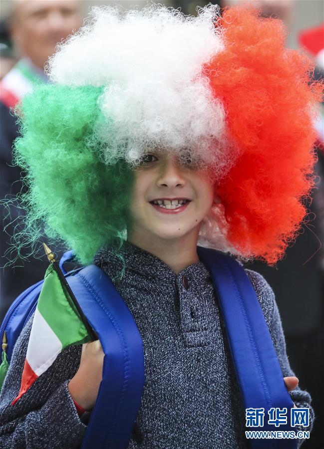 10月8日,在美國紐約曼哈頓第五大道,人們參加哥倫布日游行。