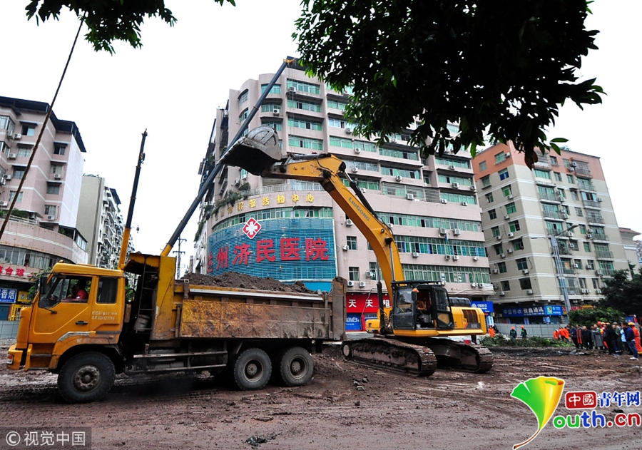 四川達州一人行道塌陷致2人死亡 救援仍在進行