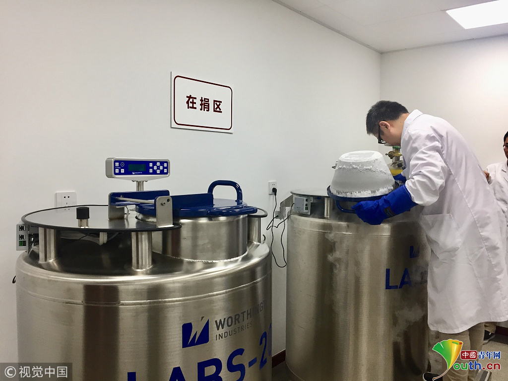 2018年9月20日,上海,實拍復旦大學人類精子庫。在復旦大學人類精子庫,志愿者捐獻出的精液被保存在液氮中。圖片作者:陳斯斯