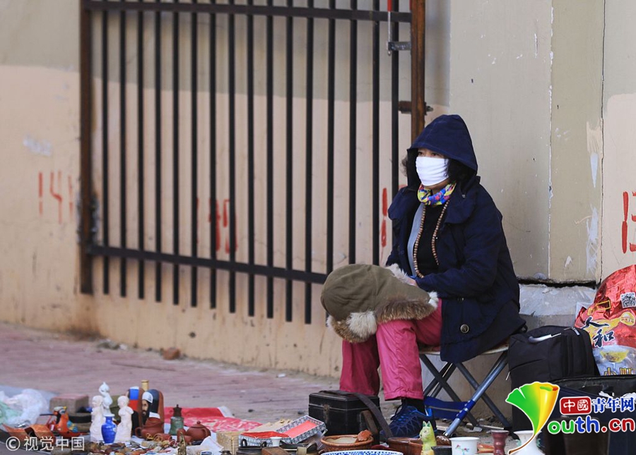 2018年10月7日,黑龍江省哈爾濱市,清晨,哈市溫度僅有5℃,在道外靖宇街,出地?cái)偟娜撕凸鋽偟氖忻瘢娂姶┥嫌鸾q服與棉服御寒。