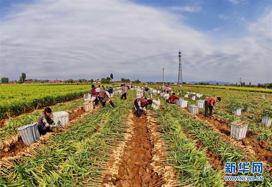 10月9日,秦皇島市撫寧區(qū)留守營鎮(zhèn)桑園村農(nóng)民在收獲生姜。 近年來,河北省秦皇島市撫寧區(qū)在農(nóng)業(yè)結(jié)構(gòu)調(diào)整過程中,引導(dǎo)當(dāng)?shù)剞r(nóng)民種植優(yōu)質(zhì)無公害生姜,并安排農(nóng)業(yè)技術(shù)員定期到田間指導(dǎo)農(nóng)民對(duì)生姜進(jìn)行標(biāo)準(zhǔn)化管理。據(jù)介紹,今年該縣生姜種植面積1萬多畝,預(yù)計(jì)產(chǎn)生姜5萬噸,種植戶每畝純收入達(dá)1萬多元。 新華社記者 楊世堯 攝