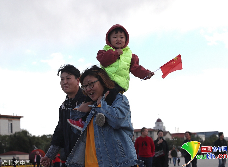 天安門(mén)廣場(chǎng)的游客小朋友。