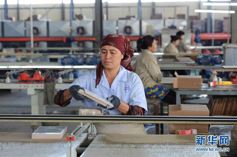 2017年5月1日,工人在位于烏茲別克斯坦錫爾河州的鵬盛工業(yè)園區(qū)瓷磚生產(chǎn)車間工作。鵬盛工業(yè)園是中國民營企業(yè)直接在烏投資建立的首個中烏合資工業(yè)園區(qū)。