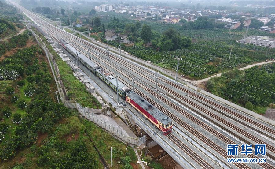 當(dāng)日起,成雅鐵路成朝段啟動聯(lián)調(diào)聯(lián)試工作。成雅鐵路成朝段于2013年8月開工建設(shè),為雙線客運(yùn)專線,設(shè)計(jì)時速200公里。 新華社記者薛玉斌攝