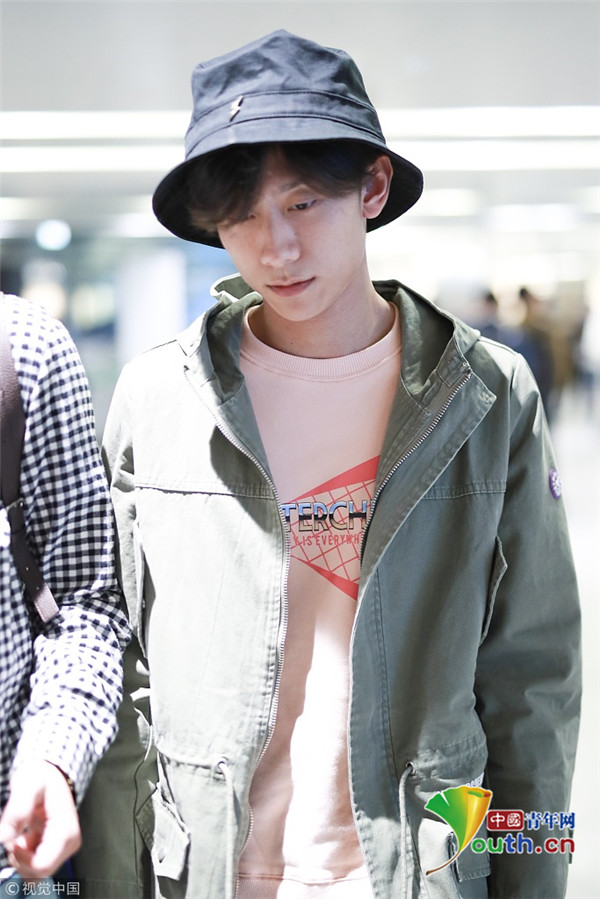 2018年10月14日,上海,張一山抵達上海機場。張一山戴漁夫帽眼袋嚴重瞬間老十歲, 用手擋臉似不愿上鏡。