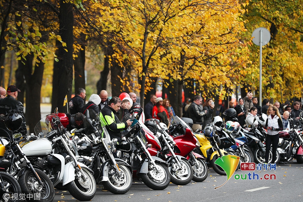 當(dāng)?shù)貢r間2018年10月13日,俄羅斯莫斯科,當(dāng)?shù)嘏e行摩托車游行。