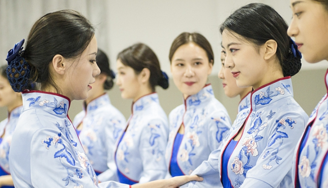 高顏值禮儀志愿者備戰(zhàn)第五屆世界互聯(lián) ...