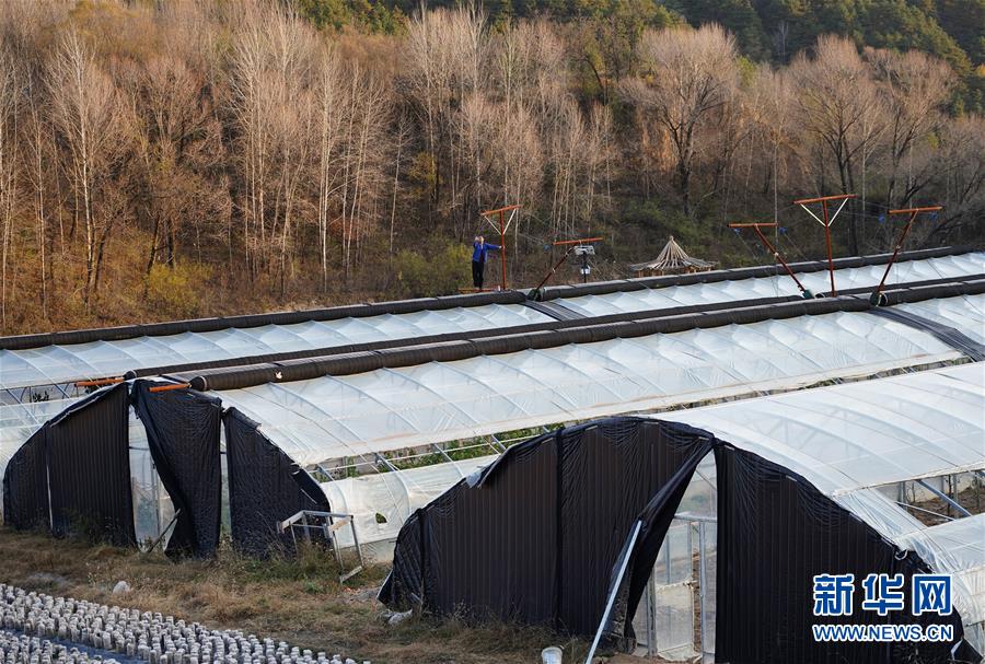10月15日,一名黃連河村村民在林下生態(tài)產(chǎn)業(yè)園內(nèi)檢修大棚。新華社記者邵瑞 攝