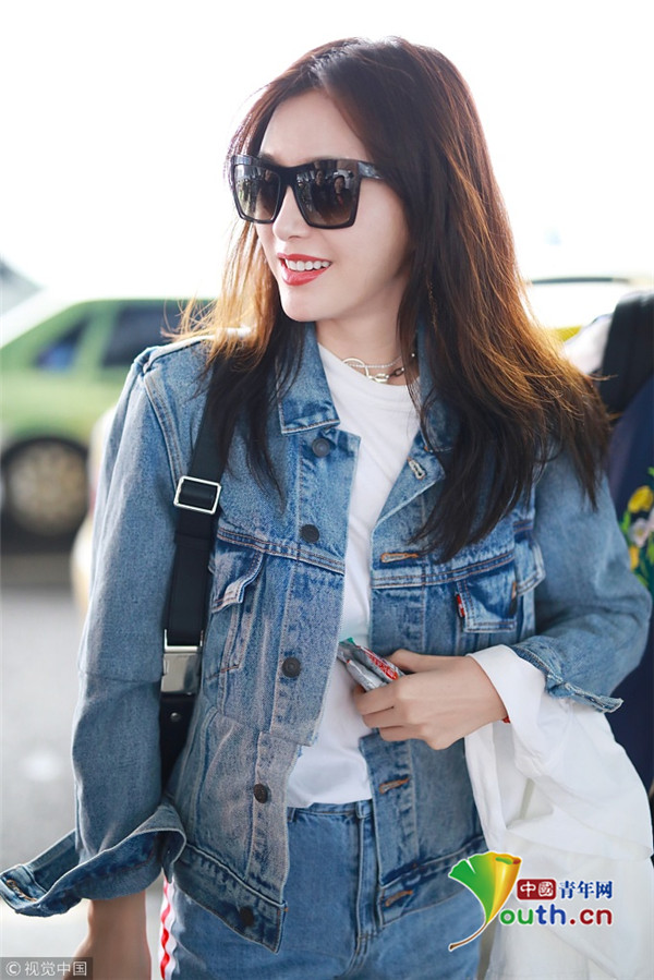2018年10月17日,上海,秦嵐現(xiàn)身機場。她一身牛仔LOOK露出白皙長腿,雪膚紅唇美得不可方物,長發(fā)飄飄玉手撩發(fā)女神范十足。
