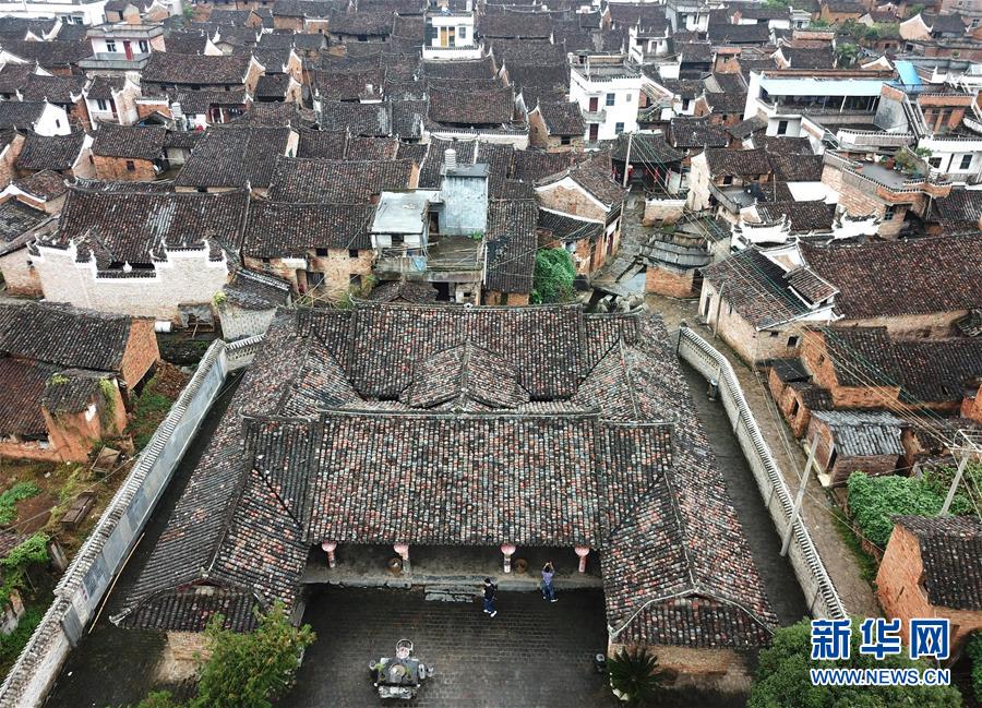 廣西富川瑤族自治縣朝東鎮(zhèn)秀水村連片民居(10月19日無人機拍攝)?!⌒氯A社記者 周華 攝