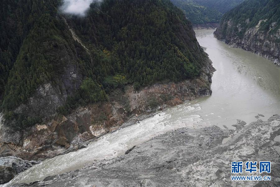 10月20日拍攝的西藏雅魯藏布江米林縣堰塞湖自然過流現(xiàn)場(chǎng)。 10月19日13時(shí)30分,西藏雅魯藏布江米林縣堰塞湖開始自然過流。記者從應(yīng)急管理部牽頭的聯(lián)合工作組獲悉,截至20日7時(shí),雅魯藏布江堰塞湖壩前水位已下降56米,估算留存水量1.6億立方米,堰塞湖洪水威脅得到緩解,防洪安全風(fēng)險(xiǎn)大大減輕,并將繼續(xù)降低。 10月20日,記者乘坐直升機(jī)從空中拍攝了雅魯藏布江堰塞湖自然過流的畫面。 新華社記者普布扎西攝
