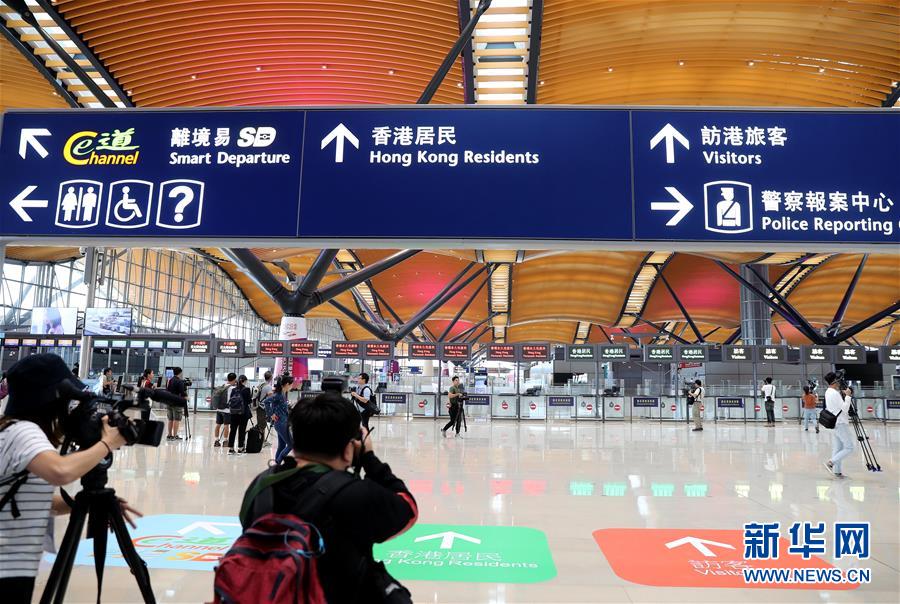 10月19日,媒體記者在香港口岸旅檢大樓參觀。 港珠澳大橋開通在即。 新華社記者 李鋼 攝