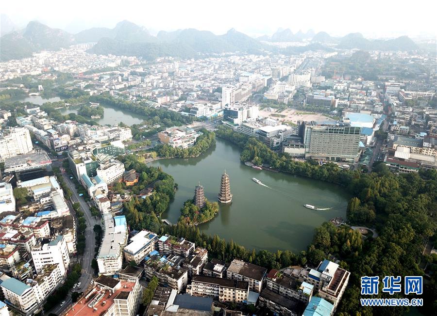游船在廣西桂林市杉湖湖面上穿行(10月17日無(wú)人機(jī)拍攝)。 江作青羅帶,山如碧玉簪。1100多年前,唐朝詩(shī)人韓愈寫盡桂林山水之美。千百年來(lái),桂林的青山綠水成為歷朝歷代文人騷客筆下的“人間仙境”。 保護(hù)好桂林山水,既是對(duì)祖國(guó)大好河山負(fù)責(zé),更是對(duì)歷史負(fù)責(zé)。近年來(lái),尤其是黨的十八大以來(lái),桂林嚴(yán)守生態(tài)底線,以前所未有的力度截污治河,保護(hù)漓江最美山水,推動(dòng)城鄉(xiāng)統(tǒng)籌協(xié)調(diào)發(fā)展,不斷擴(kuò)大對(duì)外開(kāi)放合作力度,努力在青山綠水里走出一條生態(tài)文明路。 新華社記者 周華 攝