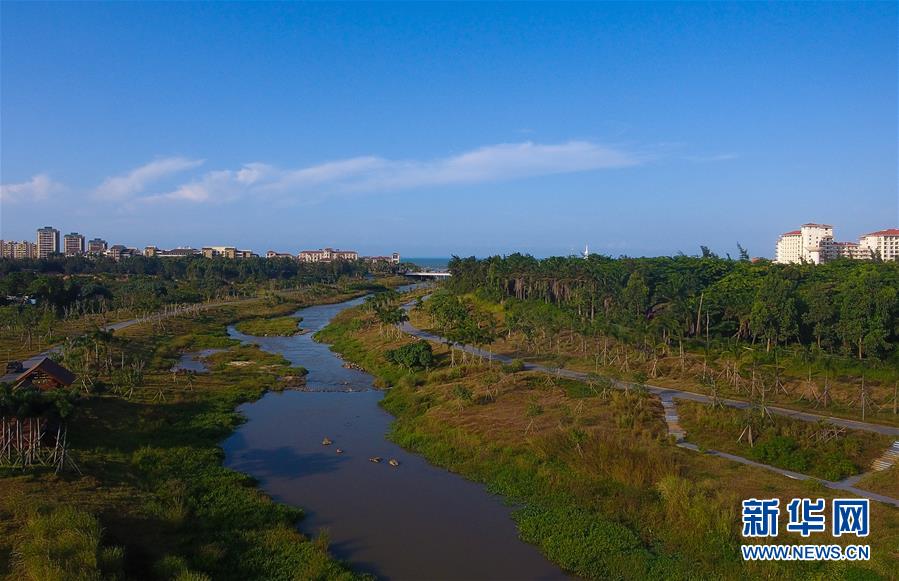 這是海口市美舍河鳳翔濕地公園一角(10月22日無人機(jī)拍攝)。 海口市鳳翔濕地公園內(nèi)流水潺潺,綠草如茵。很難想象,這個(gè)市民游客休閑散步的好去處、具有強(qiáng)大污水凈化功能的濕地公園,兩年前還是臭氣熏天、人們避之不及的垃圾堆填場。 把生態(tài)文明建設(shè)放到更加突出的位置,近兩年來??谑幸詽竦爻鞘薪ㄔO(shè)為突破口,不斷創(chuàng)新城市生態(tài)治理,著力改善生態(tài)民生,在生態(tài)文明建設(shè)上闖關(guān)探路。 新華社記者 楊冠宇 攝