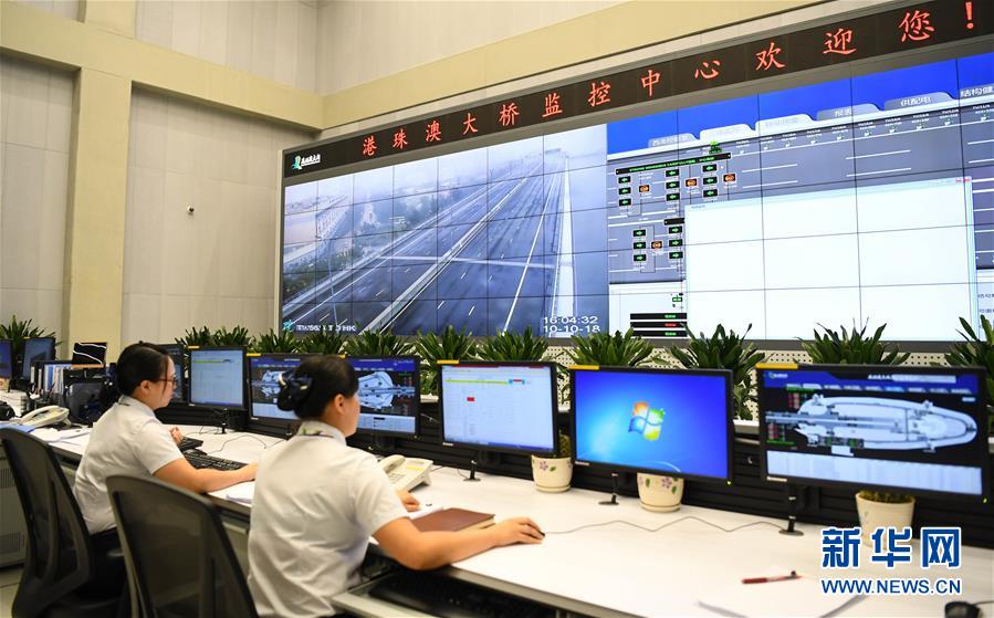 港珠澳大橋監(jiān)控中心(2018年10月10日攝)。 金秋十月,伶仃洋上海天一色、潮聲陣陣,依傍著這片中國(guó)南海水域的城市群迎來(lái)深具意義的一天。 10月23日上午,港珠澳大橋開通儀式在廣東珠海舉行,中共中央總書記、國(guó)家主席、中央軍委主席習(xí)近平出席儀式,宣布大橋正式開通。 碧波之上,一橋飛架香港、澳門、珠海三地,以氣貫長(zhǎng)虹的“中國(guó)跨度”,飛越滄海百年的歷史風(fēng)云,展現(xiàn)當(dāng)代中國(guó)的雄健風(fēng)采。 新華社記者鄧華攝