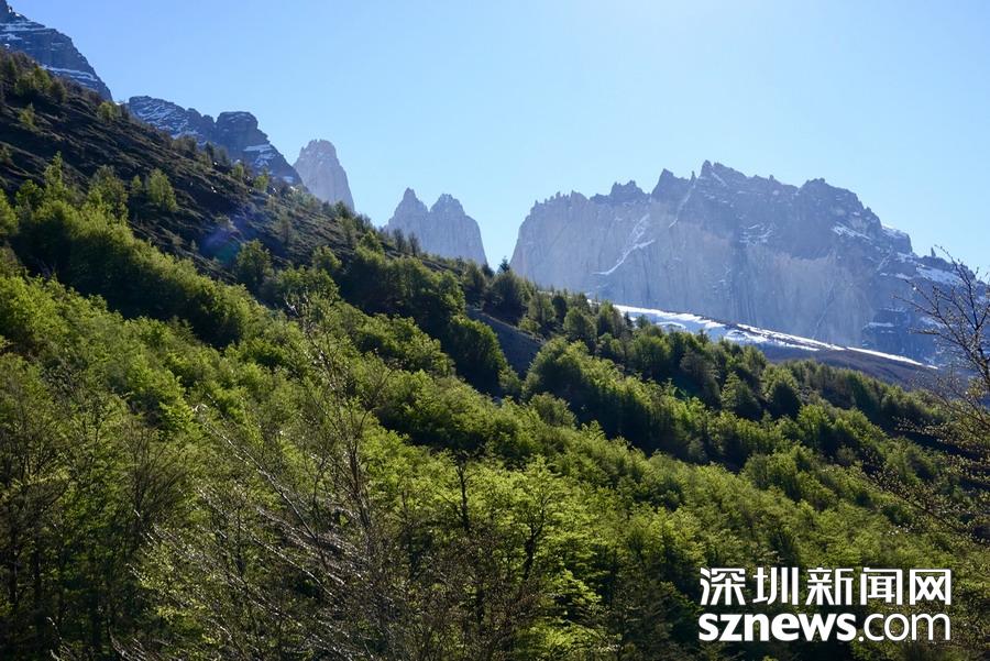 百內(nèi)國(guó)家公園內(nèi)的三塔峰是智利乃至南美洲久負(fù)盛名的徒步旅游景點(diǎn)。三座塔峰兀然聳立,海拔高度都在2200米以上,方圓幾十公里之外都能看到它們的倩影。這個(gè)景點(diǎn)對(duì)全球戶外旅游愛好者有著非凡的魅力。徒步愛好者歷經(jīng)10小時(shí)征服三塔峰,拍下沿途美景。李仁奇 攝
