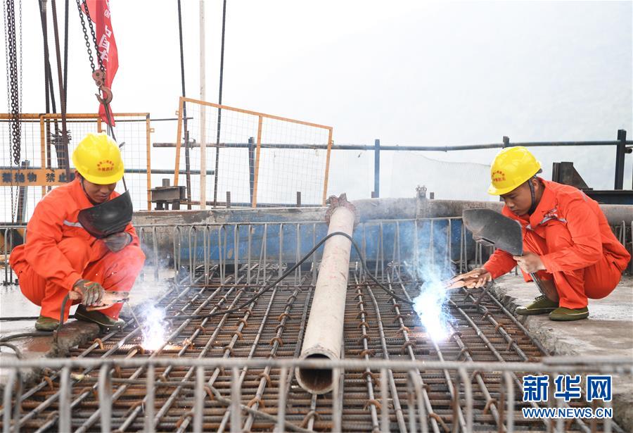 10月23日,在重慶涪陵,施工人員在渝懷鐵路涪秀二線重點工程——烏江右線大橋主跨合龍現(xiàn)場作業(yè)。 當日,由中鐵四局承建的渝懷鐵路涪秀二線重點工程——烏江右線大橋主跨成功合龍,標志著大橋主體工程全部順利結(jié)束。烏江右線大橋項目全程460.1米,主跨192米,跨越烏江和319國道。在兩年多的建設(shè)過程中,施工人員攻克了“不等高墩”“不對稱邊跨”“邊跨入隧”等多個技術(shù)難題。 新華社記者王全超攝