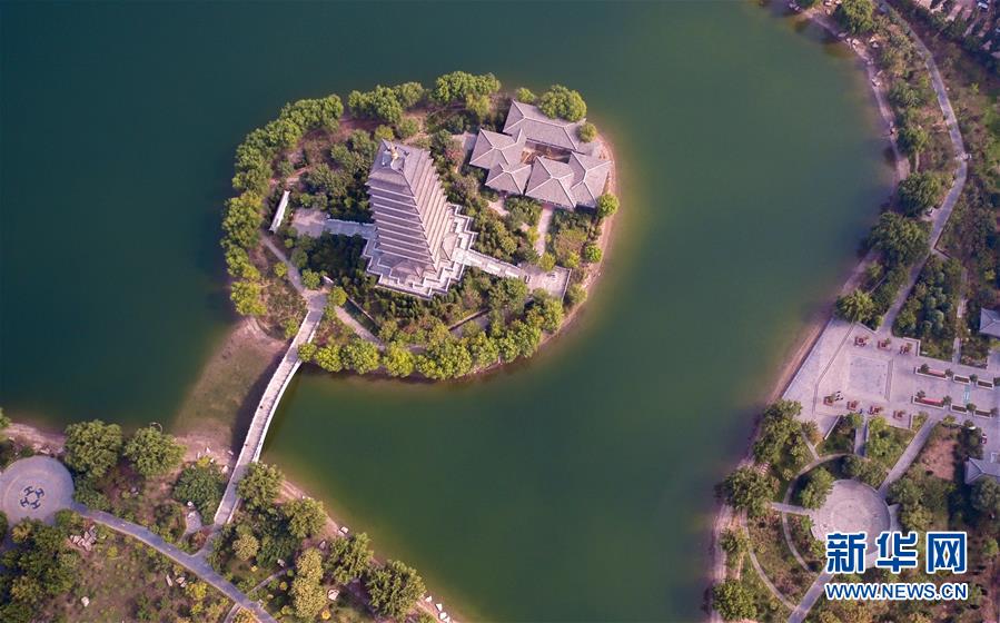 這是10月25日無人機拍攝的邯鄲市臨漳縣鄴城公園一角。 新華社記者王曉攝