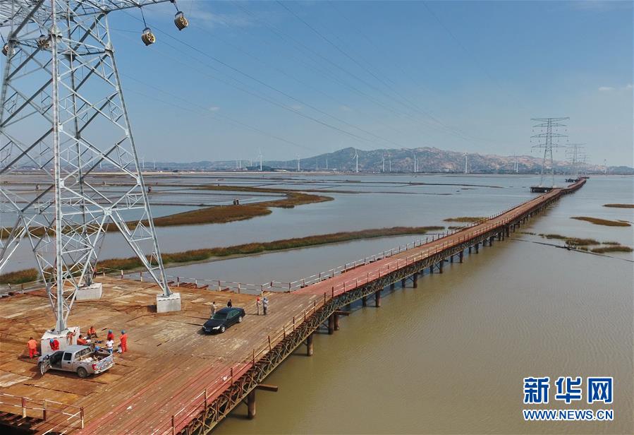 當日,福建省重點工程——莆田埭頭風電220千伏送出工程第一根導線順利牽引出線。為避免在海上構(gòu)筑圍堰,工程采用全國首創(chuàng)的全路徑鋼棧橋橫跨海灣方式,減少了土地占用,有助于保護生態(tài)環(huán)境,為跨海電力施工提供了實踐經(jīng)驗。