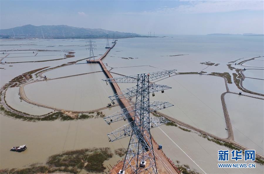 這是建在莆田平海灣上的輸送風(fēng)電鐵塔和橫跨平海灣的全路徑棧橋(10月25日無(wú)人機(jī)拍攝)。 新華社記者林善傳攝