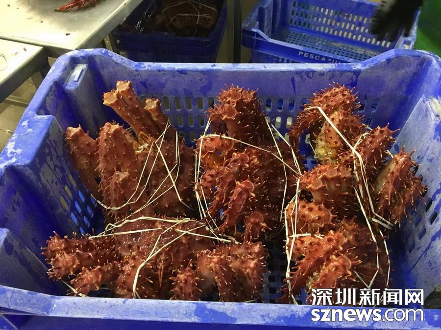 深圳新聞網(wǎng)訊   蜘蛛蟹(又名皇帝蟹)只產(chǎn)于南北兩極冰冷的海洋中,因為八條腿特長,外觀形似蜘蛛,而且觸角也比普通螃蟹多,所以被稱為蜘蛛蟹,大個的重量可達5公斤以上。智利政府規(guī)定,小于1.5公斤的不許捕撈。