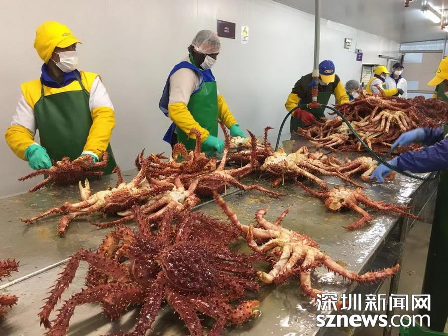 智力蜘蛛蟹加工基地, 產(chǎn)于南極洲海域。  李仁奇 攝