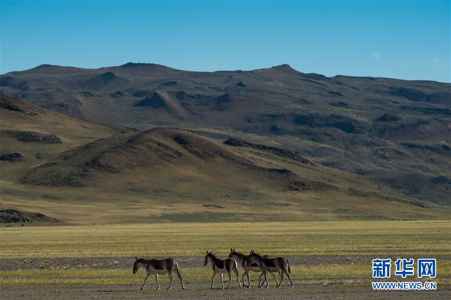 在西藏阿里地區(qū)境內(nèi)拍攝的國家一級保護動物藏野驢(9月19日攝)。 阿里地處西藏西部,平均海拔4500米以上,面積30多萬平方公里,羌塘國家級自然保護區(qū)幾乎涵蓋整個阿里地區(qū),是眾多野生動物生活的樂園。 新華社記者 旦增尼瑪曲珠 攝