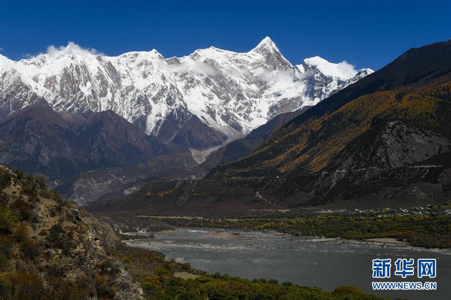 南迦巴瓦峰位于喜馬拉雅山脈東端,海拔7782米,峰頂終年積雪,蔚為壯觀。