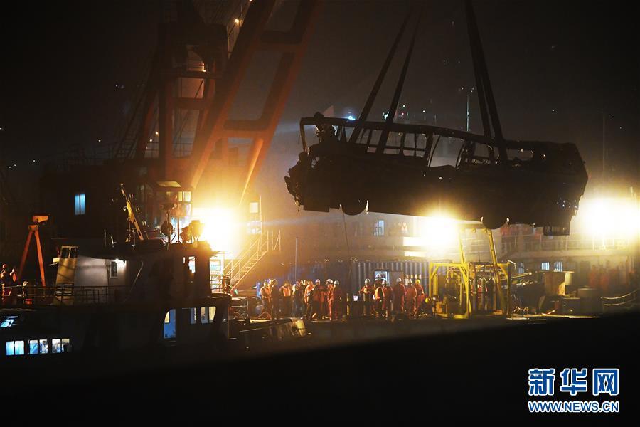 2018年10月31日消息,重慶。10月31日23時28分,重慶萬州長江二橋墜江公交車被打撈出水。