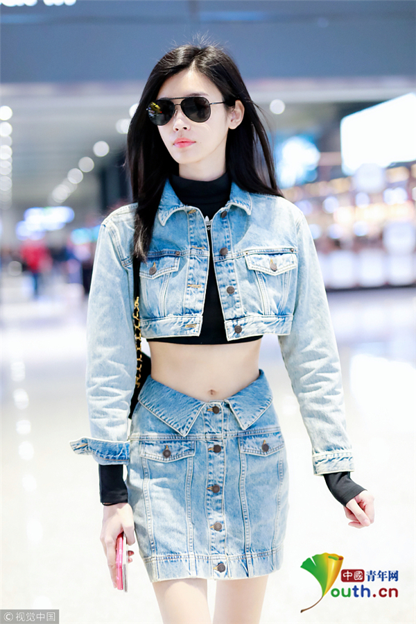 奚夢(mèng)瑤一身帥氣牛仔裝 露細(xì)腰長(zhǎng)腿顯 ...