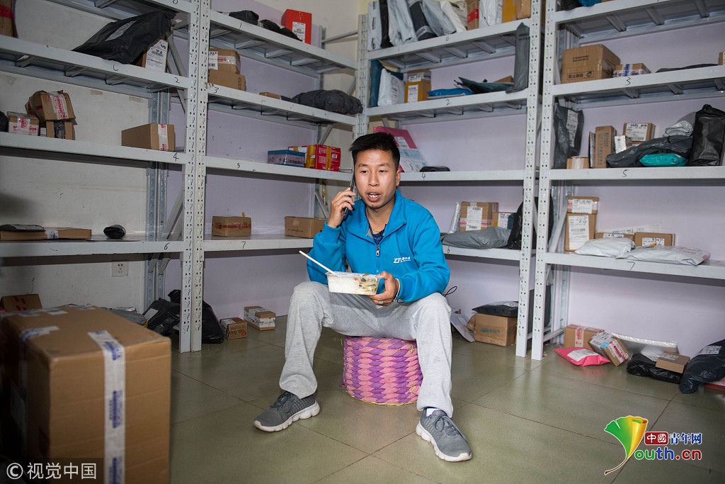 云南省昆明市,攝影師實(shí)拍90后快遞員熊忠桃的一天工作。作為一名快遞員,他25歲就買(mǎi)了房。圖片作者:銳圖