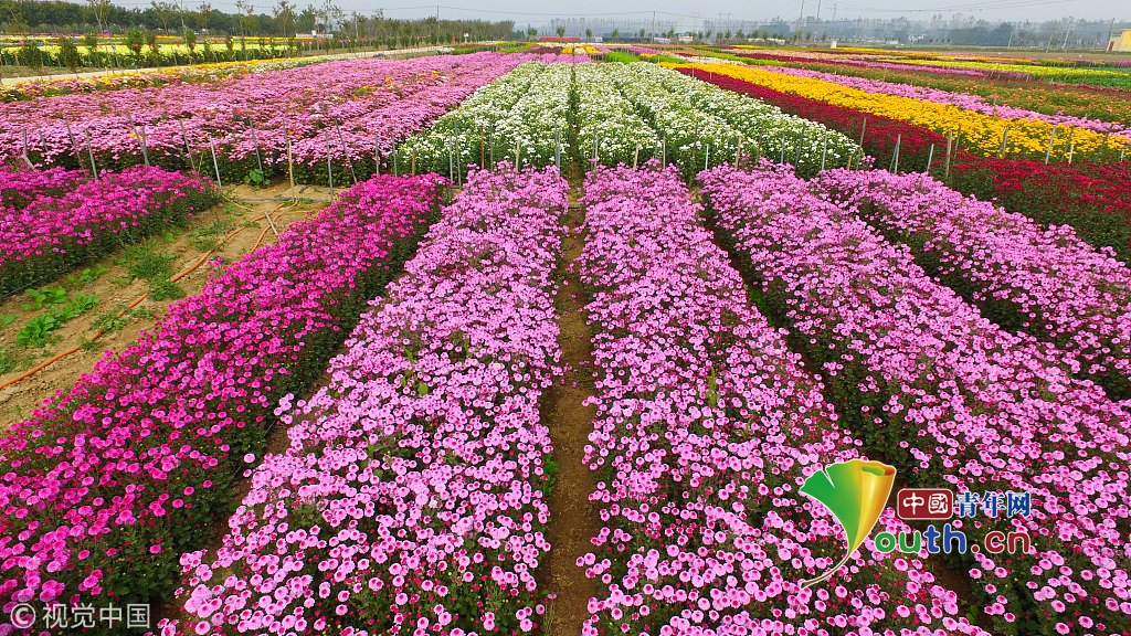 河南許昌觀賞彩菊綻放如五彩地毯 航拍展現震撼美