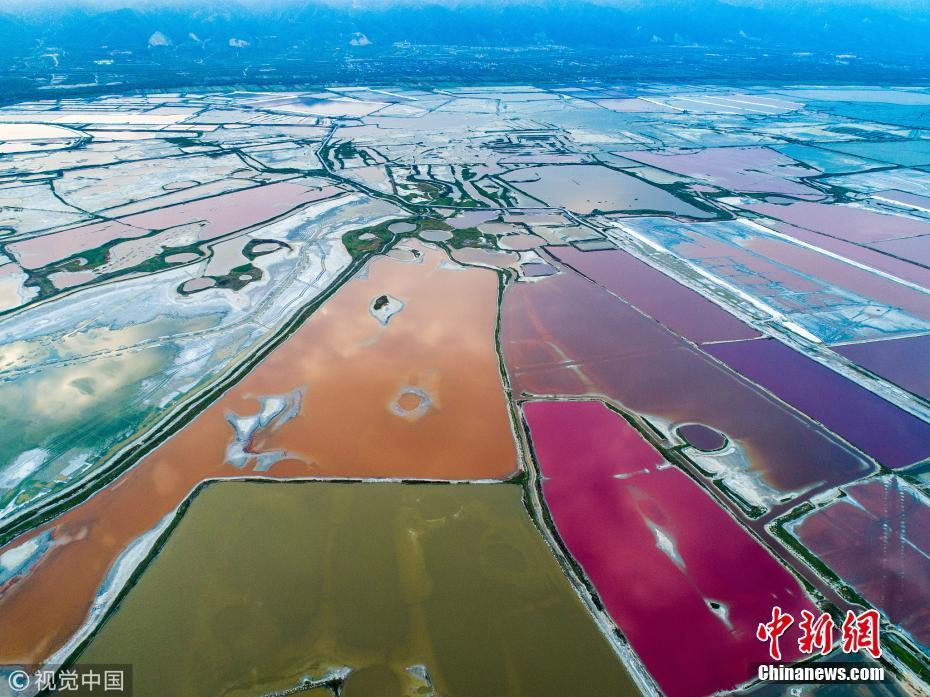 10月6日,山西省運(yùn)城鹽湖景區(qū)鹽湖秋日美景。入秋以來,隨著氣溫的改變,山西省運(yùn)城鹽湖泛起出色彩斑斕、美不勝收的秋天特有的七彩景致,非常迷人。尚建周 攝 圖片來源:視覺中國(guó)