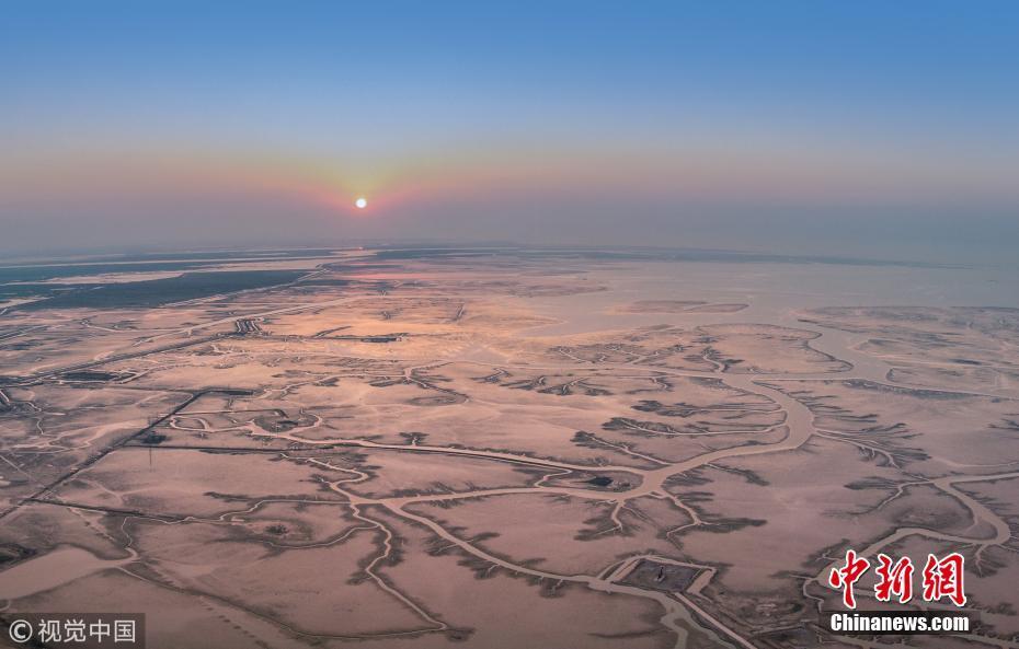 10月3日,山東東營(yíng),航拍黃河三角洲國(guó)家級(jí)自然保護(hù)區(qū)內(nèi)壯觀的河流脈絡(luò)。圖片來源:視覺中國(guó)