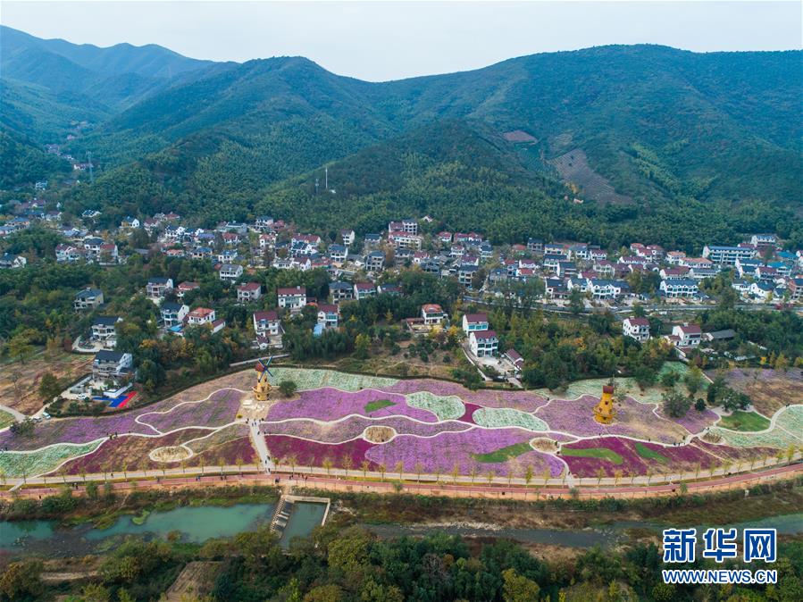 11月2日,空中俯瞰小浦鎮(zhèn)的“五彩花?!?,多彩的花海與金黃的銀杏林構(gòu)成了一幅美麗的秋季風(fēng)景(無人機(jī)拍攝)。 新華社記者 徐昱 攝