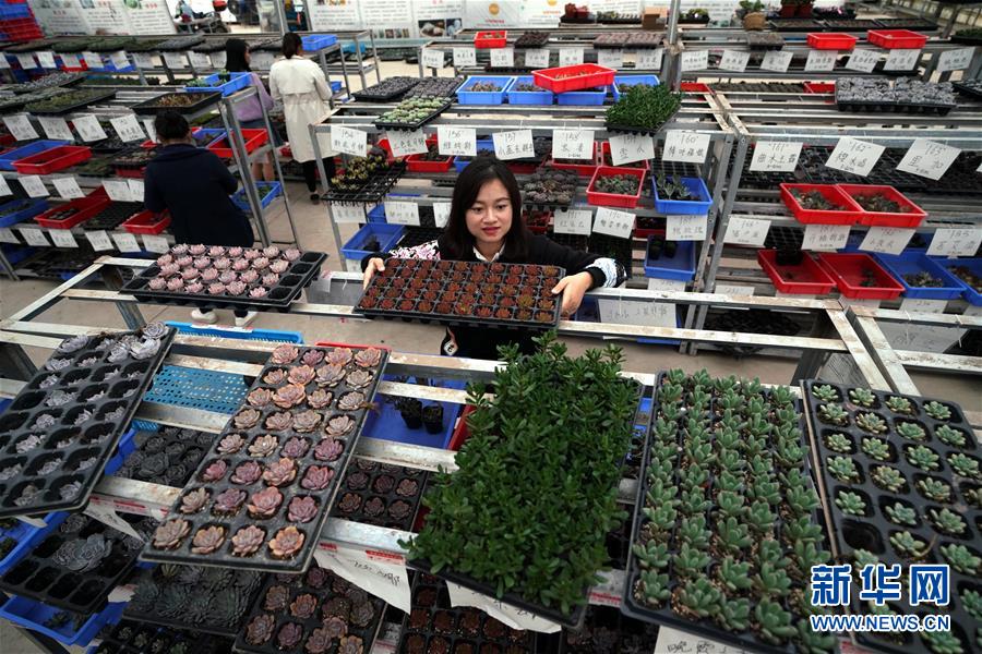 11月3日,在貴溪市歐綠多肉植物種植基地,工作人員為“雙十一”購(gòu)物節(jié)備貨。新華社記者宋振平攝