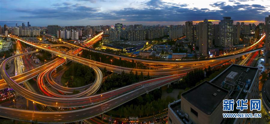 11月1日拍攝的上海夜景(全景拼接照片)。 首屆中國國際進口博覽會即將在上海開幕。美麗的上海張開懷抱,迎接八方來客。 新華社記者 殷剛 攝