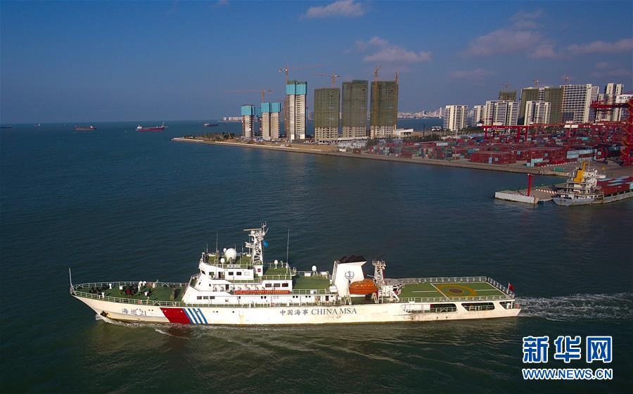 11月3日,“海巡21”輪駛出港口。 當日,隨著“海巡21”輪緩緩駛離海口海事監(jiān)管基地碼頭,由瓊桂粵海事部門共同開展的瓊州海峽、北部灣及環(huán)海南島水域跨轄區(qū)聯(lián)合巡航執(zhí)法活動揭開序幕。 新華社記者楊冠宇攝