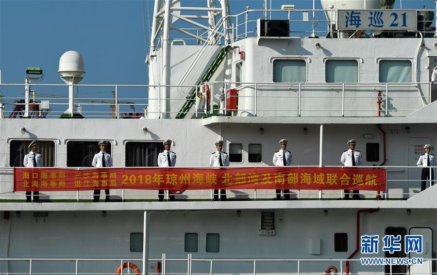 11月3日,海事執(zhí)法人員乘“海巡21”輪出發(fā)。 當日,隨著“海巡21”輪緩緩駛離??诤J卤O(jiān)管基地碼頭,由瓊桂粵海事部門共同開展的瓊州海峽、北部灣及環(huán)海南島水域跨轄區(qū)聯(lián)合巡航執(zhí)法活動揭開序幕。 新華社記者楊冠宇攝